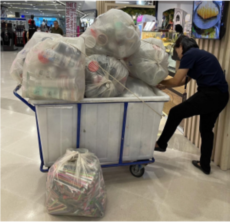 - Storage and transport constraints: The mall currently has limited space for storing waste, and transporting waste to the five MRFs presents logistical challenges due to the distance. Waste is collected on a biweekly schedule.